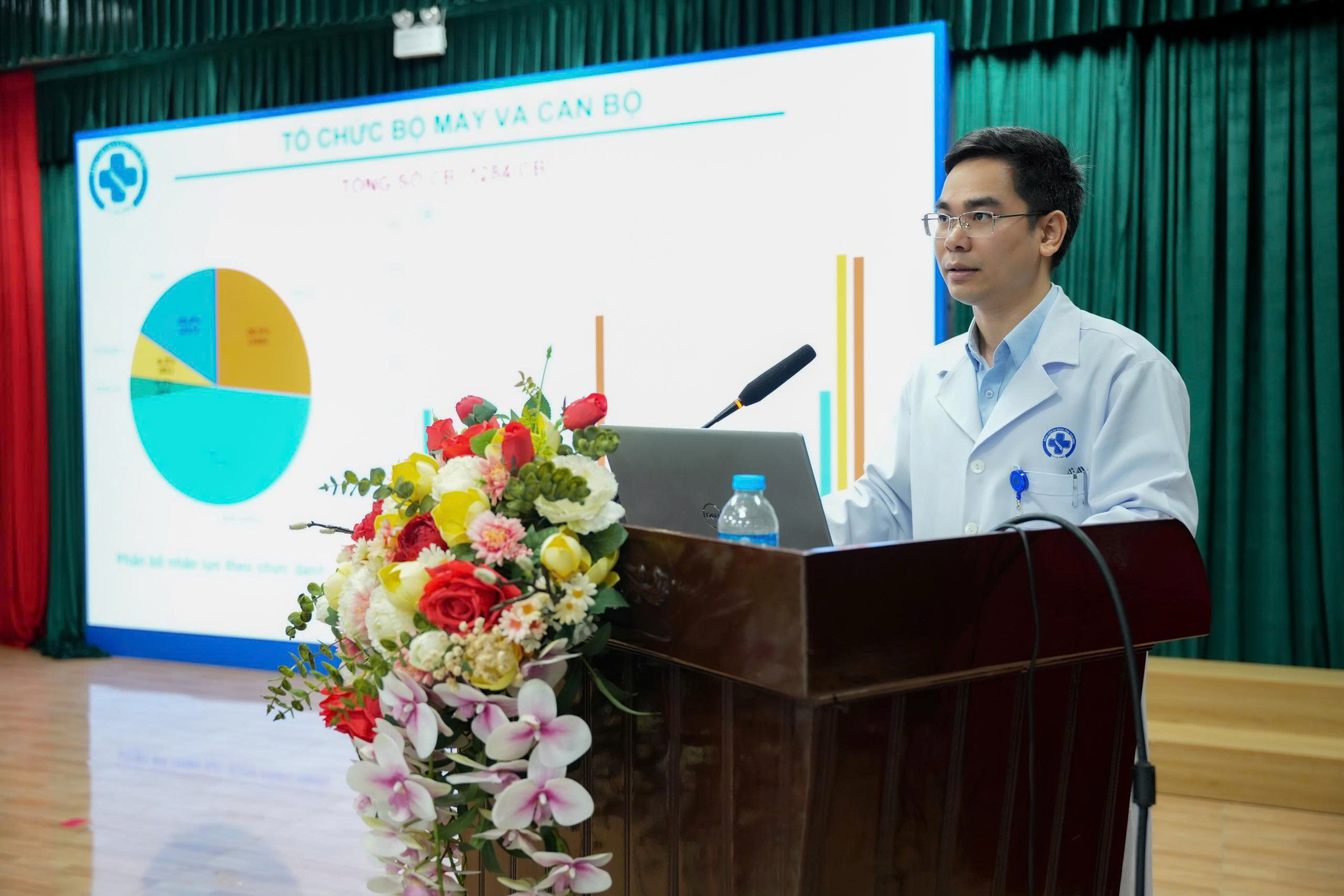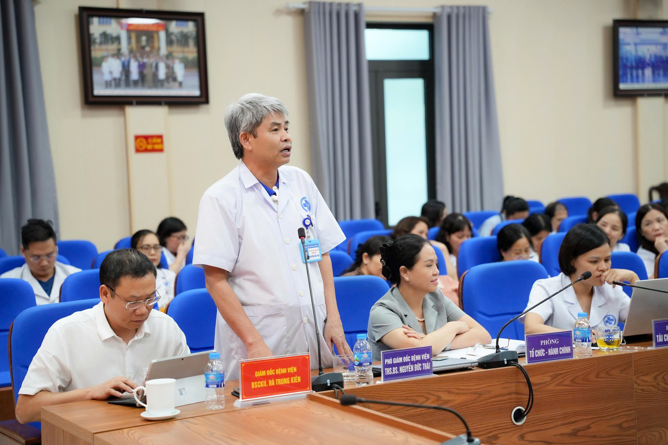 Phát biểu chỉ đạo, BSCKII Hà Trung Kiên đánh giá cao việc Bệnh viện cơ bản hoàn thành các chỉ tiêu chuyên môn và tài chính. Đồng chí cũng thẳng thắn chỉ ra những tồn tại cần phải khắc phục. Để hoàn thành mục tiêu năm 2025, đồng chí Giám đốc chỉ đạo tăng cường thu hút bệnh nhân khám ngoại trú; làm tốt công tác quản lý hồ sơ bệnh án, đẩy mạnh ứng dụng chuyển đổi số trong hoạt động khám chữa bệnh. Đồng chí yêu cầu các đơn vị tập trung tham mưu các sáng kiến và giải pháp cụ thể để hoàn thành tốt chỉ tiêu, kế hoạch năm 2025.