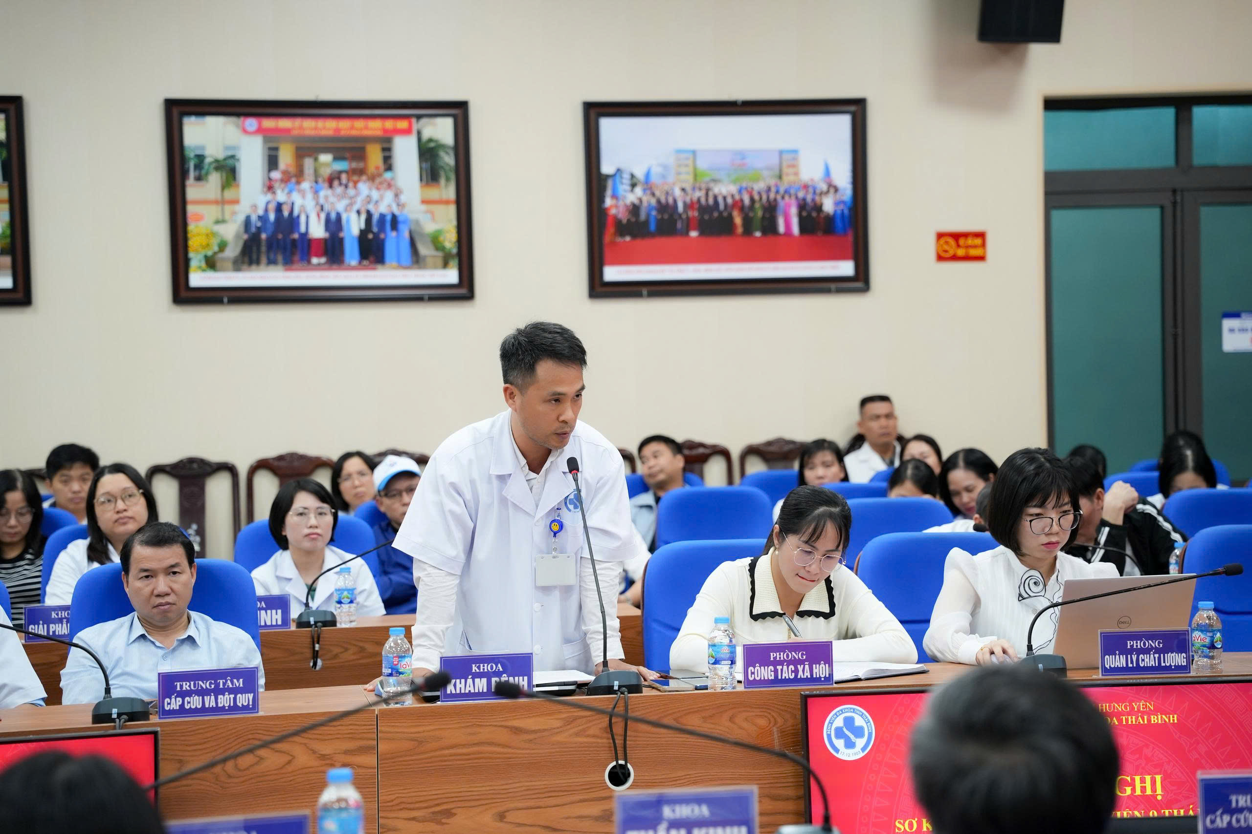 Ngày 31/10/2025, Bệnh viện Đa khoa Thái Bình tổ chức Hội nghị Sơ kết công tác 9 tháng và triển khai nhiệm vụ trọng tâm Quý IV năm 2025. BSCKII Hà Trung Kiên, Bí thư Đảng Bộ, Giám đốc Bệnh viện chủ trì Hội nghị. Dự hội nghị có các đồng chí trong Ban lãnh đạo Bện viện; BCH Công đoàn; Đoàn thanh niên Bệnh viện cùng Trưởng, Phó trưởng, Điều dưỡng trưởng/Kỹ thuật viện trưởng; Tổ trưởng công đoàn các khoa/phòng/trung tâm.