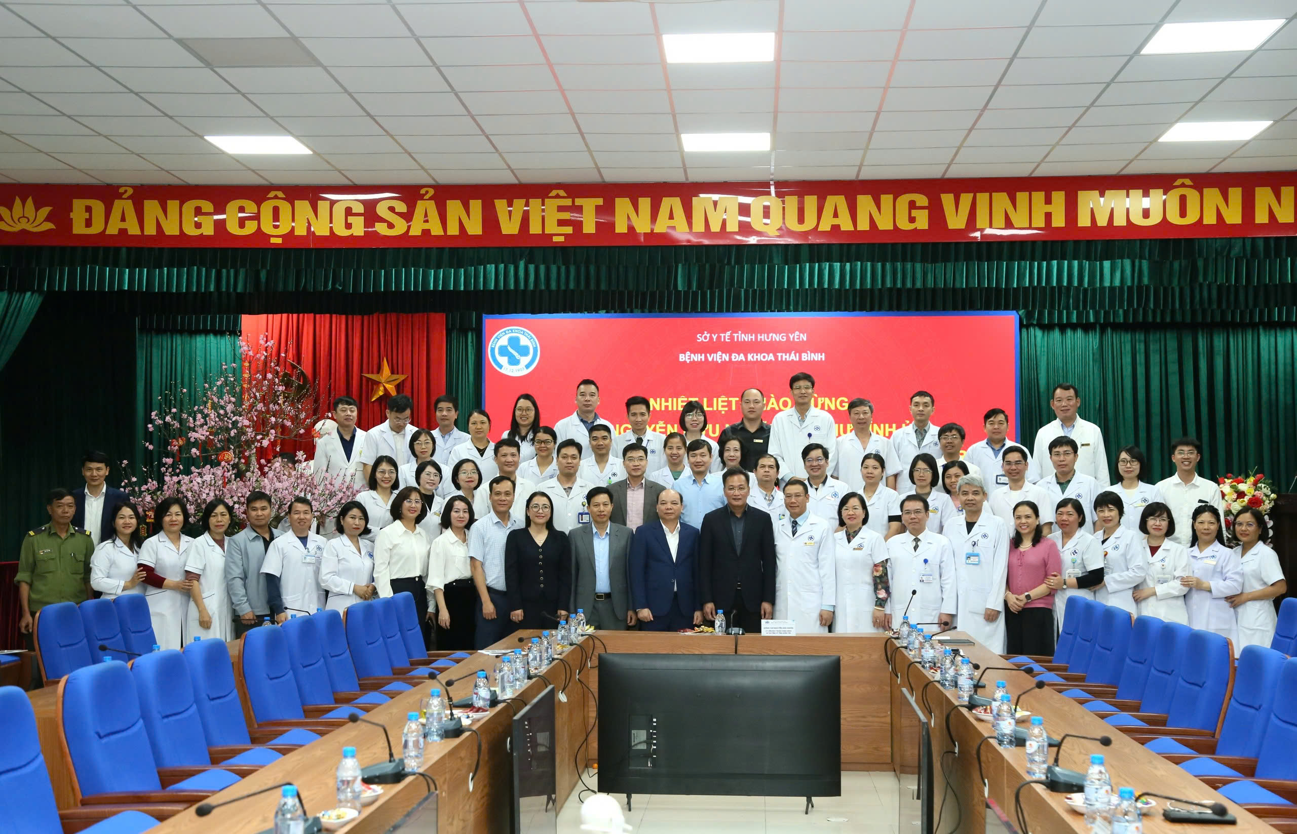 Tại buổi làm việc, TTƯT. BSCKII Hà Trung Kiên, Giám đốc Bệnh viện báo cáo tóm tắt kết quả đạt được trong công tác khám chữa bệnh năm 2025 và kế hoạch và phương án trực Tết Nguyên đán Bính Ngọ năm 2026: Bệnh viện Đa khoa Thái Bình là Bệnh viện duy nhất tại tỉnh Hưng Yên đạt Cấp chuyên sâu về chuyên môn kỹ thuật, với quy mô 1500 giường bệnh, 46 khoa, phòng, trung tâm và 1.281 cán bộ, viên chức, người lao động. Trong số 337 bác sĩ, có tới gần 60% đạt trình độ sau đại học với 37 Tiến sĩ, BSCKII; 156 Thạc sĩ, BSCKI và 8 BS Nội trú. Năm 2025, bệnh viện đã thực hiện gần 350.000 lượt khám chữa bệnh, hơn 97.000 lượt điều trị nội trú và trên 16.000 ca phẫu thuật an toàn; các chỉ tiêu chuyên môn chung đạt 103,2%; triển khai thành công 27 kỹ thuật mới và chính thức triển khai bệnh án điện tử. Trong phong trào nghiên cứu Khoa học, Bệnh viện đã xuất sắc giành được 9/26 giải thuộc lĩnh vực y tế tại Hội thi Sáng tạo Khoa học, công nghệ và Kỹ thuật tỉnh Hưng Yên lần thứ Nhất. Kết quả ấn tượng này không chỉ khẳng định năng lực chuyên môn vững vàng mà còn minh chứng cho vị thế tiên phong của Bệnh viện trong phong trào nghiên cứu khoa học và đổi mới sáng tạo tại địa phương. Đây là nền tảng quan trọng để đơn vị tiếp tục làm chủ các kỹ thuật cao, hiện đại, góp phần nâng tầm chất lượng y tế tỉnh nhà.