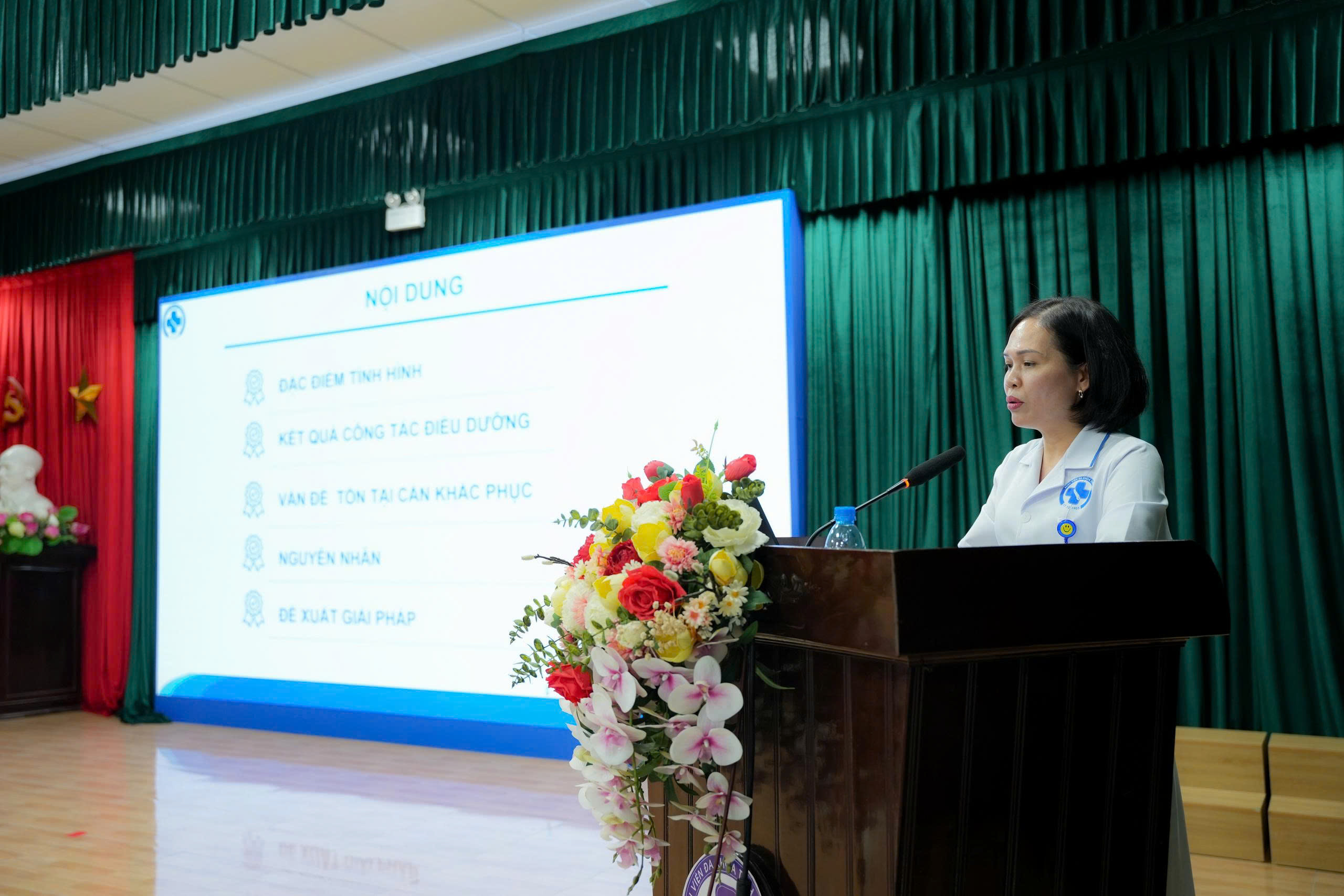 Phát biểu tại Hội nghị, TTND.TS.BSCKII Lại Đức Trí, Phó Giám đốc Bệnh viện khẳng định vai trò nòng cốt của đội ngũ điều dưỡng, kỹ thuật y khi chiếm trên 50% nhân sự toàn viện, đồng thời bày tỏ sự tự hào về sự trưởng thành trong trình độ chuyên môn khi tỉ lệ đại học và sau đại học ngày càng cao. Đồng chí nhấn mạnh, điều dưỡng là một mắt xích quan trọng trong cả một hệ thống và là một bộ phận không thể tách rời trong hoạt động khám chữa bệnh. Về công tác chuyên môn, đồng chí Phó giám đốc Bệnh viện cầu các điều dưỡng phải tập trung vào hai năng lực then chốt là chẩn đoán điều dưỡng chính xác và thực hiện can thiệp chăm sóc chuyên nghiệp, tận tâm. Đối với công tác phục vụ, đồng chí đưa ra những chỉ đạo quyết liệt nhằm nâng cao trải nghiệm bệnh nhân; đẩy mạnh việc xã hội hóa các loại hình dịch vụ tiện ích để giảm bớt gánh nặng quản trị cho đội ngũ chuyên môn tại khoa phòng. Các đơn vị cần chủ động ứng dụng công nghệ thông tin vào quản lý, sắp xếp quy trình vận hành khoa học để đáp ứng nhu cầu ngày càng cao của người bệnh, khuyến khích tinh thần đổi mới, sáng tạo, tích cực nghiên cứu khoa học, sẵn sàng thích nghi với chuyển đổi số trong ngành y tế.