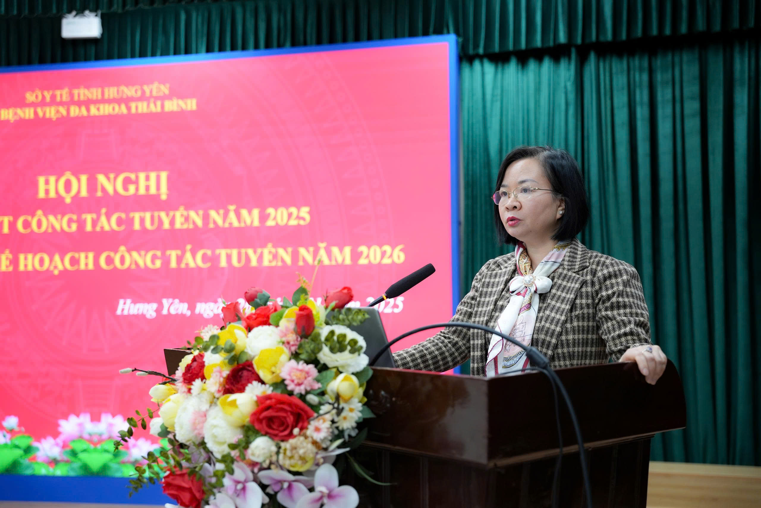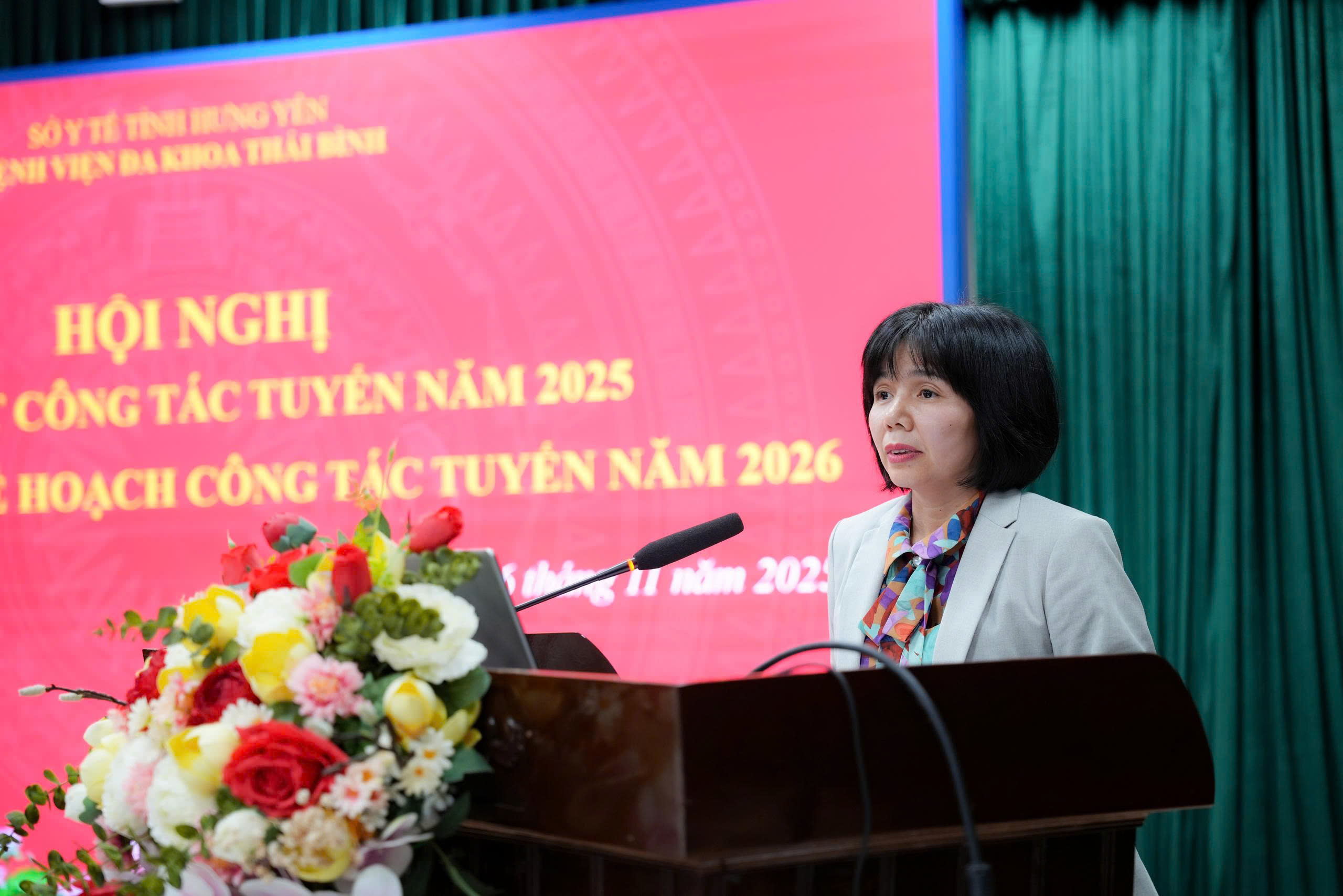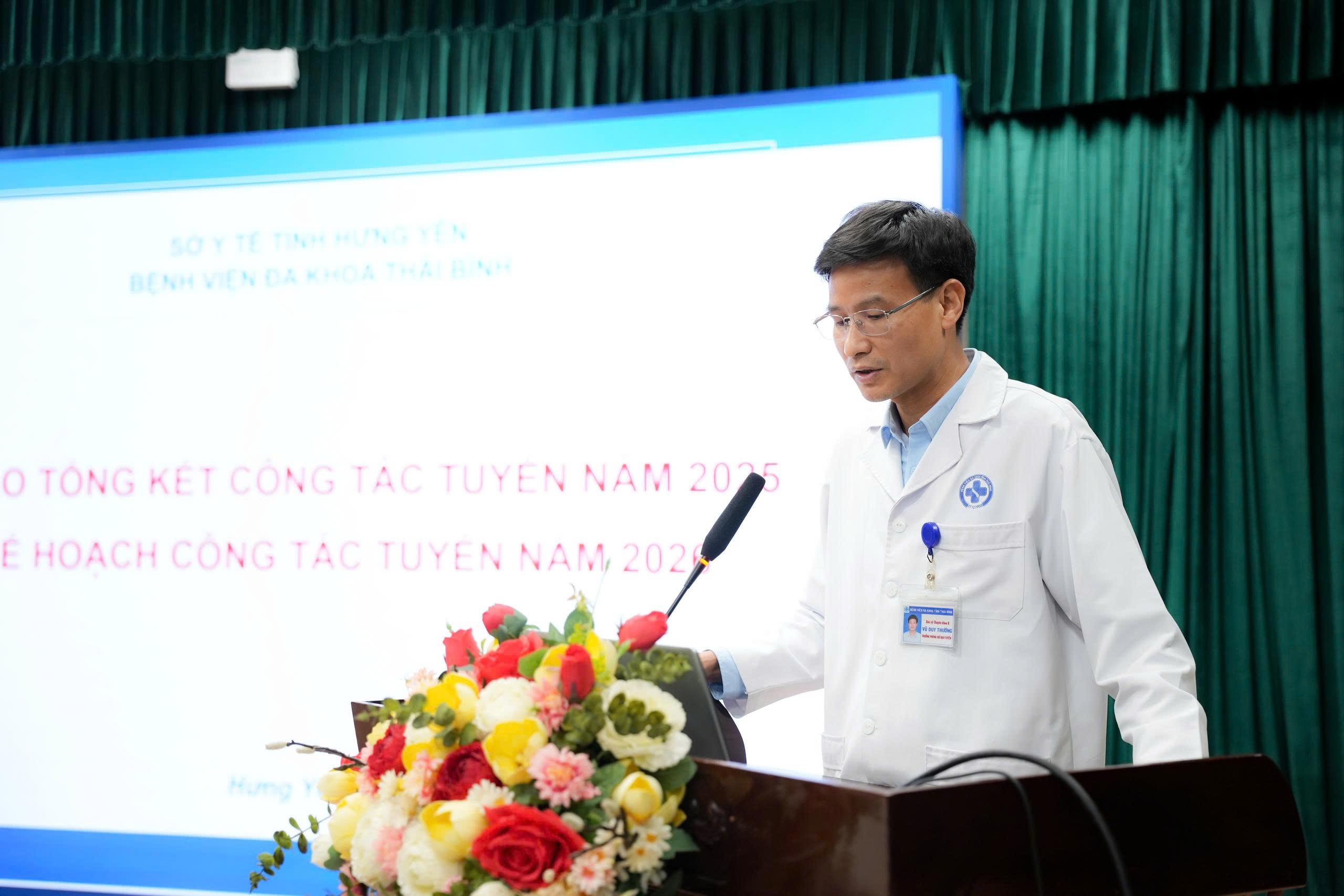 Chiều ngày 26/11/2025 Bệnh viện Đa khoa Thái Bình tổ chức hội nghị tổng kết công tác tuyến năm 2025 và triển khai kế hoạch, công tác tuyến năm 2026. Dự hội nghị có BSCKII Hà Trung Kiên – Giám đốc Bệnh viện, các đồng chí trong ban lãnh đạo bệnh viện, trưởng các Khoa/ phòng/ trung tâm; đại diện các cơ sở y tế trên địa bàn tỉnh Hưng Yên.