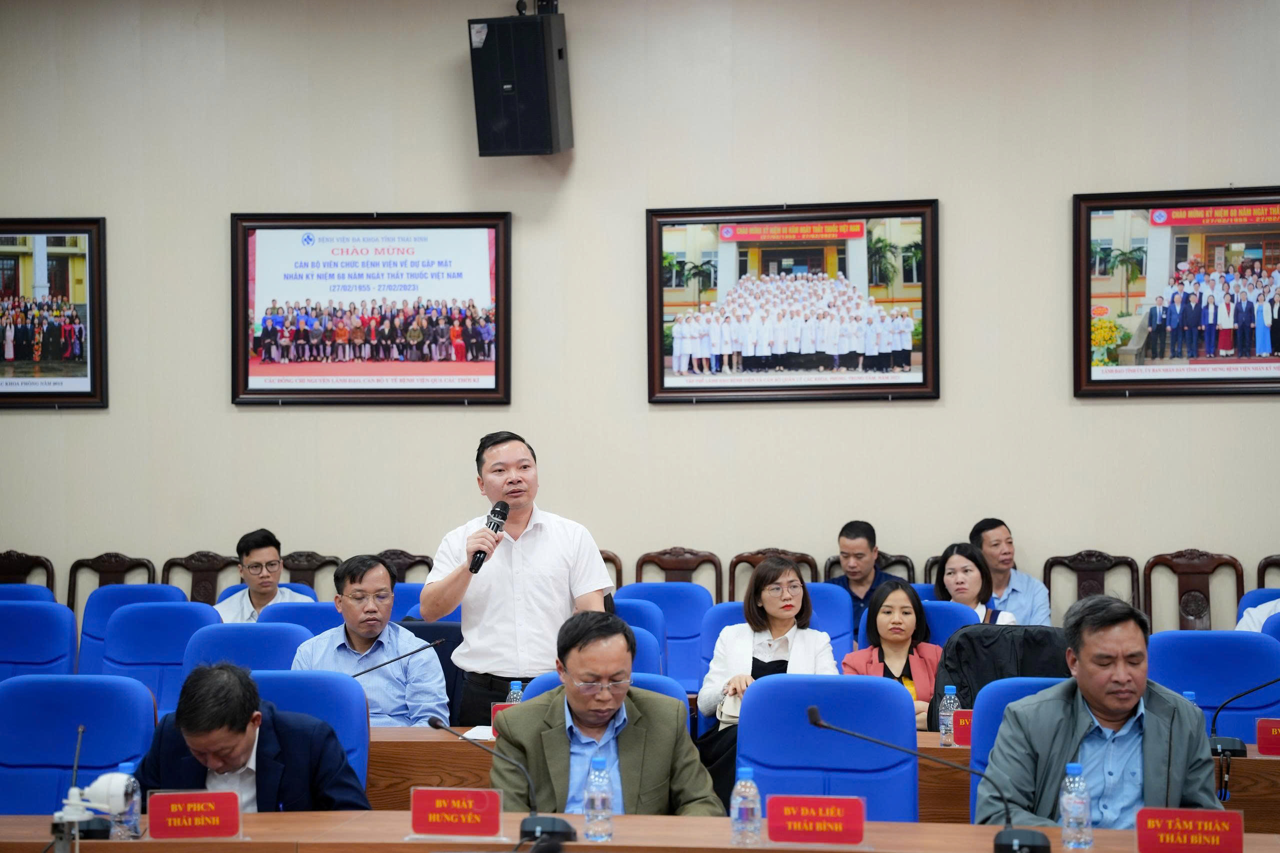 Phát biểu khai mạc hội nghị, BSCKII Hà Trung Kiên nhấn mạnh: thời gian qua, mặc dù phải đối mặt với nhiều khó khăn, thách thức nhưng phòng Chỉ đạo tuyến của bệnh viện đã hoàn thành tốt nhiệm vụ được giao, thông qua việc chuẩn hóa, cập nhật các quy trình đào tạo và thực hiện chuyển giao kỹ thuật từ tuyến trên xuống tuyến dưới, cũng như tích cực tham gia hỗ trợ hội chẩn, chỉ đạo từ xa và chi viện kỹ thuật. Đồng chí Giám đốc Bệnh viện mong muốn nhận được sự chia sẻ và đề xuất cụ thể về nhu cầu đào tạo, chuyển giao kỹ thuật, và hỗ trợ chuyên môn từ các bệnh viện tuyến dưới để Bệnh viện Đa khoa Thái Bình có những giải pháp hỗ trợ thiết thực trong năm 2026.