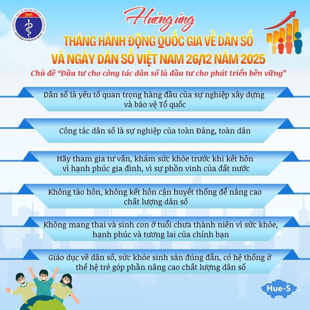 Đầu tư cho công tác dân số không phải là điều xa vời, mà bắt đầu từ chính sự quan tâm đến sức khỏe của bản thân và người thân. Khi mỗi gia đình đều khỏe mạnh ở mọi giai đoạn cuộc sống, chúng ta đang cùng nhau xây dựng một nền dân số chất lượng, góp phần vào sự phát triển bền vững của đất nước đúng với tinh thần Ngày Dân số Việt Nam 26/12.
