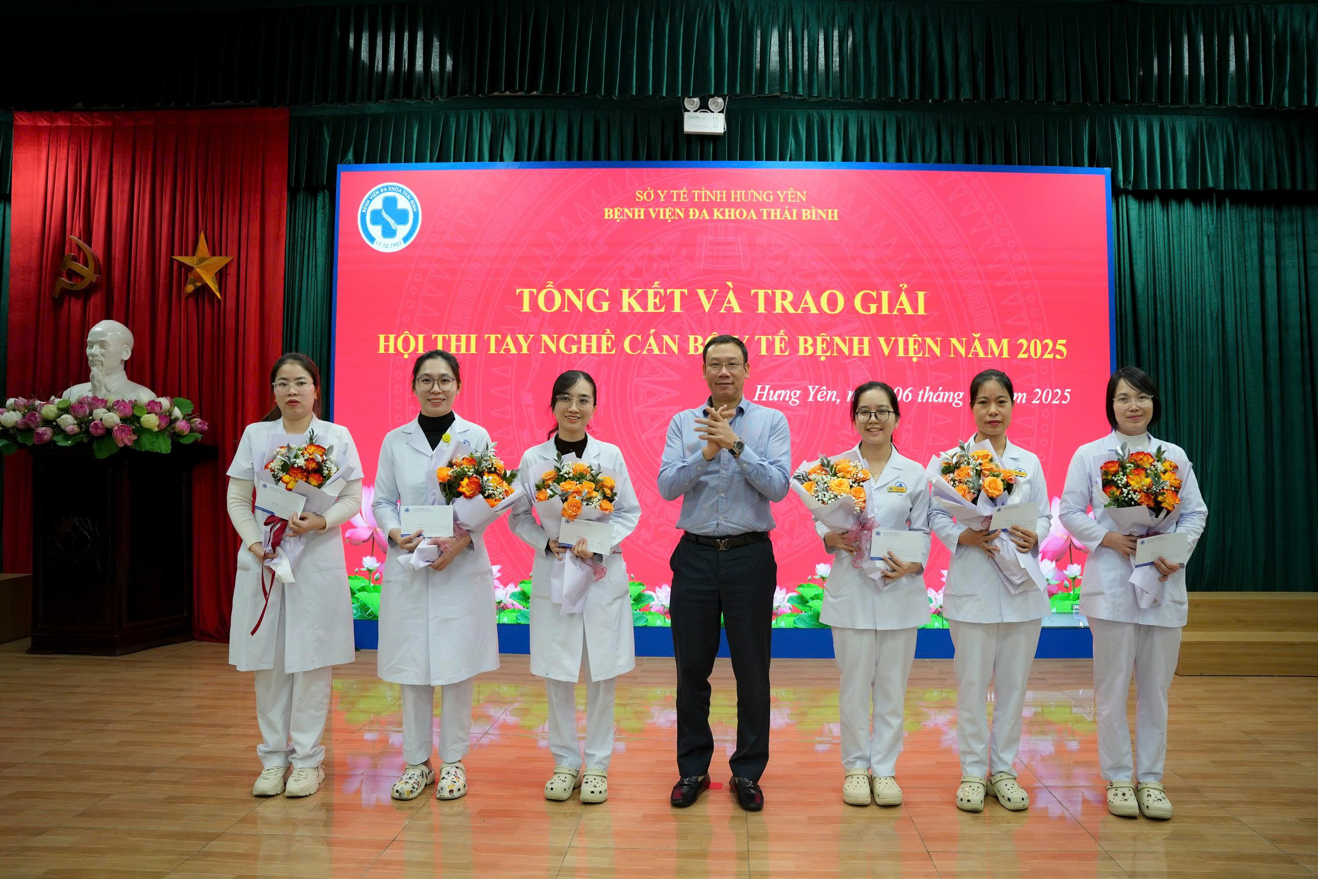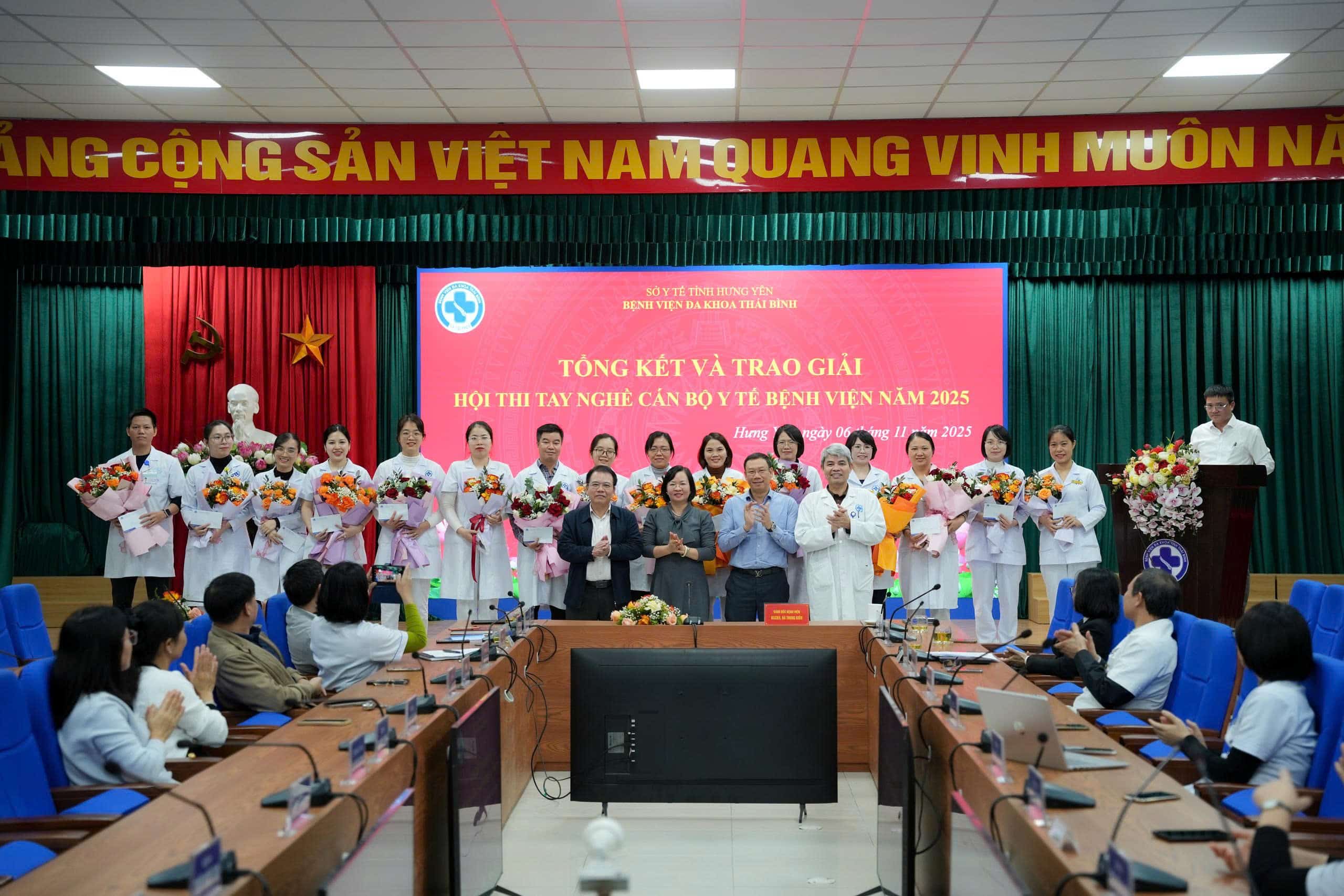 Sáng ngày 6/11/2025, Bệnh viện Đa khoa Thái Bình tổ chức Chương trình tổng kết và trao giải Hội thi tay nghề cán bộ y tế Bệnh viện năm 2025 dưới sự chủ trì của BSCKII. Hà Trung Kiên – Giám đốc Bệnh viện, Trưởng Ban tổ chức Hội thi.